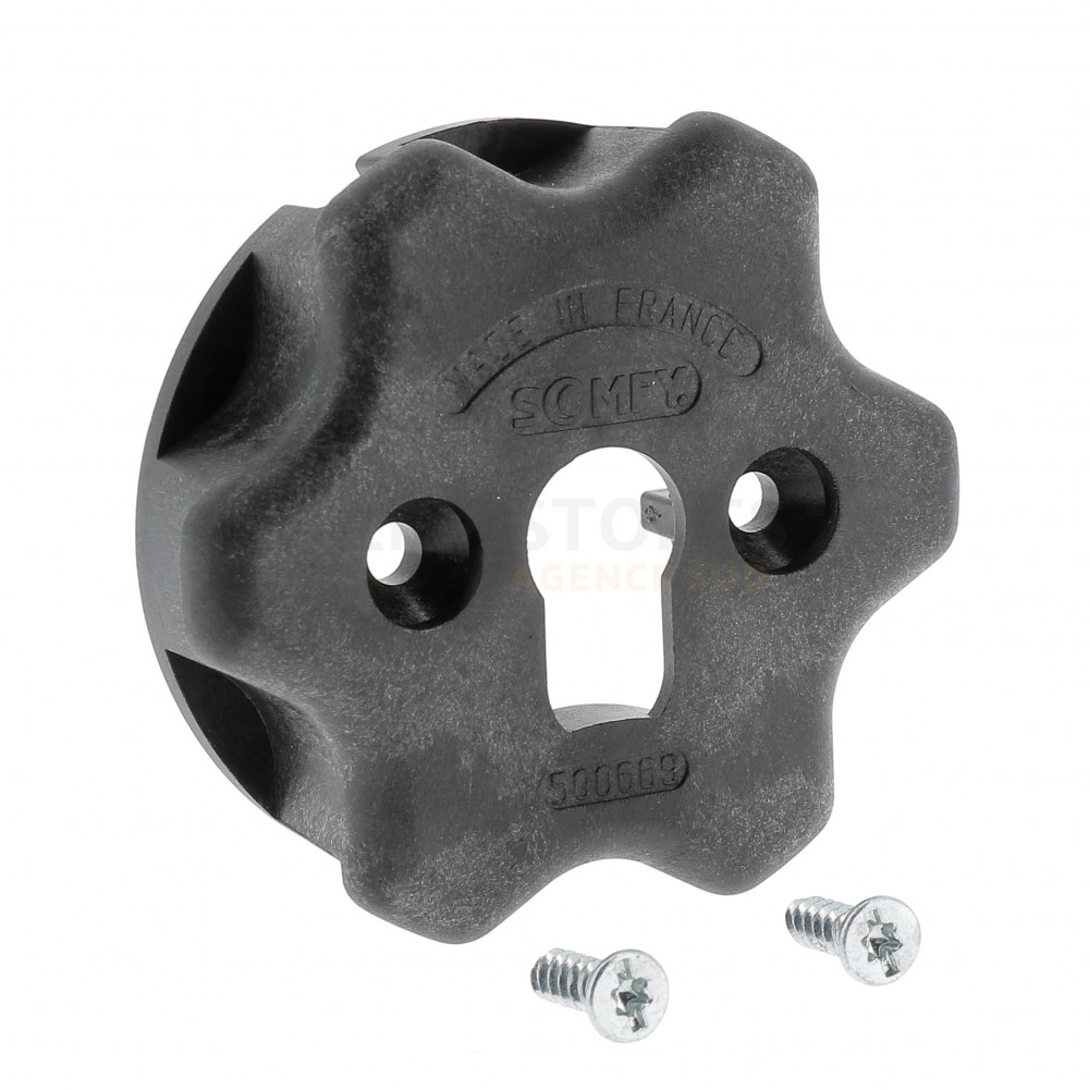 Accueille la roue du jeu d’adaptation au tube d’enroulement avec fixation automatique par clip.